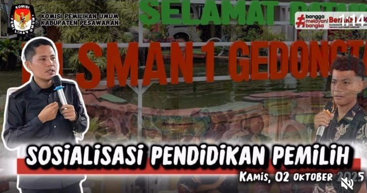 KPU Kabupaten Pesawaran mengadakan Sosialisasi Pendidikan Pemilih Pemula yang bertempat di SMAN I Gedong Tataan Kabupaten Pesawaran, hadiri dalam kegiatan ini Anggota KPU Kabupaten Pesawaran selaku Ketua Devisi SDM dan Parmas Bp. Ryan Arnando serta Kasubbag SDM dan Parmas Putri Ramadanti berserta Staf.