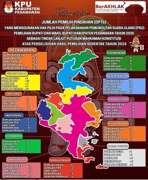Rekapitulasi Jumlah Pemilih Pindahan (DPTb) yang menggunakan Hak Pilih pada Pelaksanaan Pemungutan Suara Ulang Pasca Putusan Mahkamah Konstitusi pada Pemilihan Bupati dan Wakil Bupati Kabupaten Pesawaran Tahun 2024