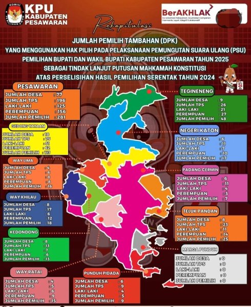 Rekapitulasi Jumlah Pemilih Tambahan (DPK) yang menggunakan Hak Pilih pada Pelaksanaan Pemungutan Suara Ulang Pasca Putusan Mahkamah Konstitusi pada Pemilihan Bupati dan Wakil Bupati Kabupaten Pesawaran Tahun 2024