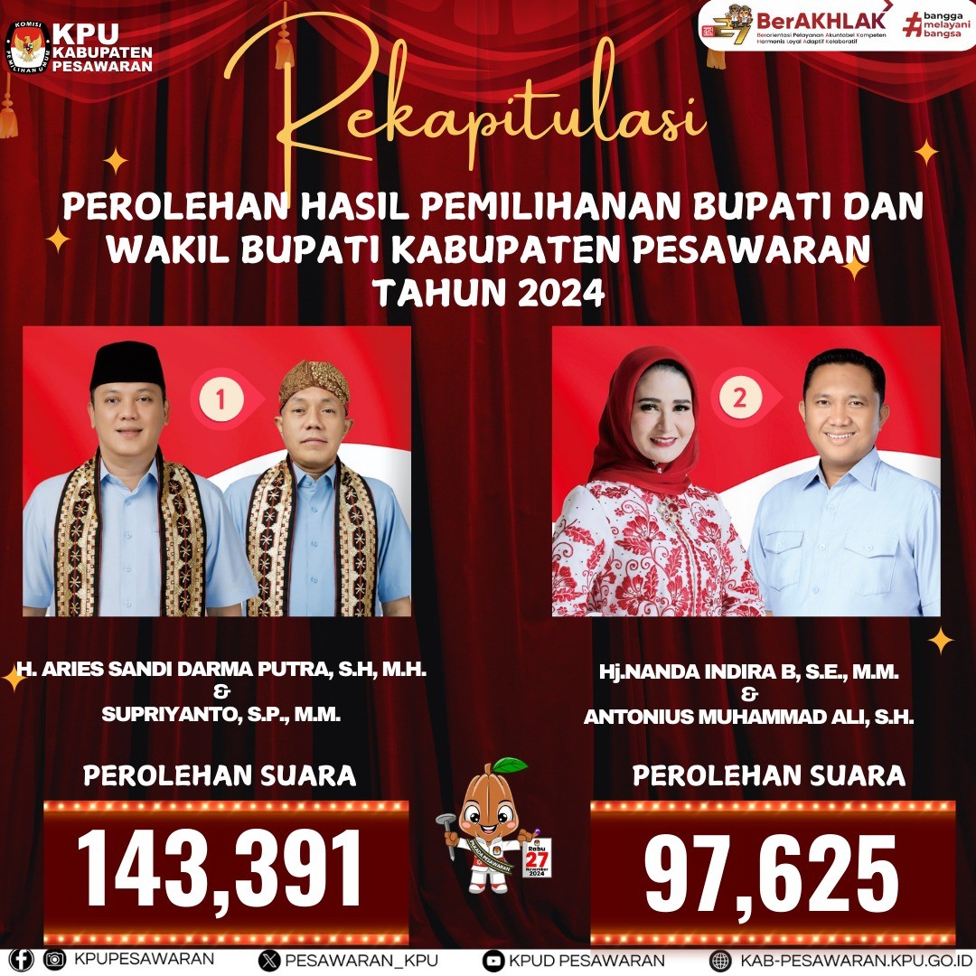 Rekapitulasi Perolehan Hasil Pemilihan Bupati dan Wakil Kabupaten Pesawaran Tahun 2024