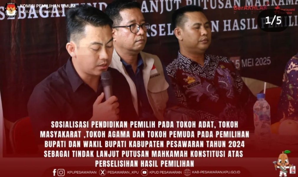 KPU Kabupaten Pesawaran menggadakan Sosialisasi Pendidikan Pemilih kepada Tokoh adat, Tokoh Masyarakat, Tokoh Agama dan Tokoh Pemuda pada Pemunggutan Suara Ulang Bupati dan Wakil Bupati Kabupaten Pesawaran Tahun 2024 bertempat di Balai Desa Trimulyo Kecamatan Padang Cermin.