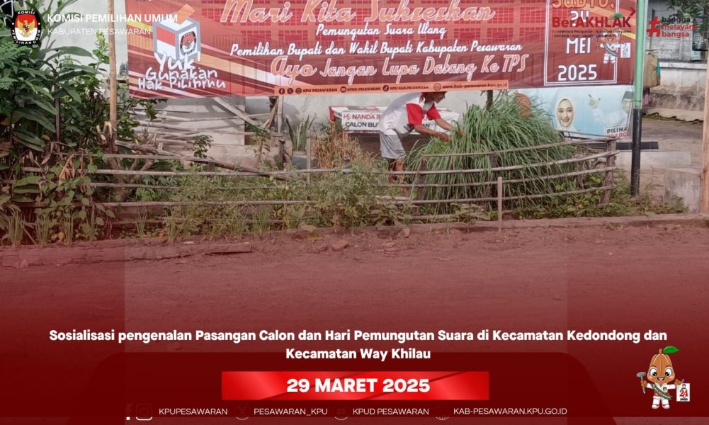 KPU Kabupaten Pesawaran melakukan Sosialisasi Pengenalan Pasangan Calon dan Hari Pemunggutan Suara Ulang (PSU) di Kecamatan Kedondong dan Kecamatan Way Lima.