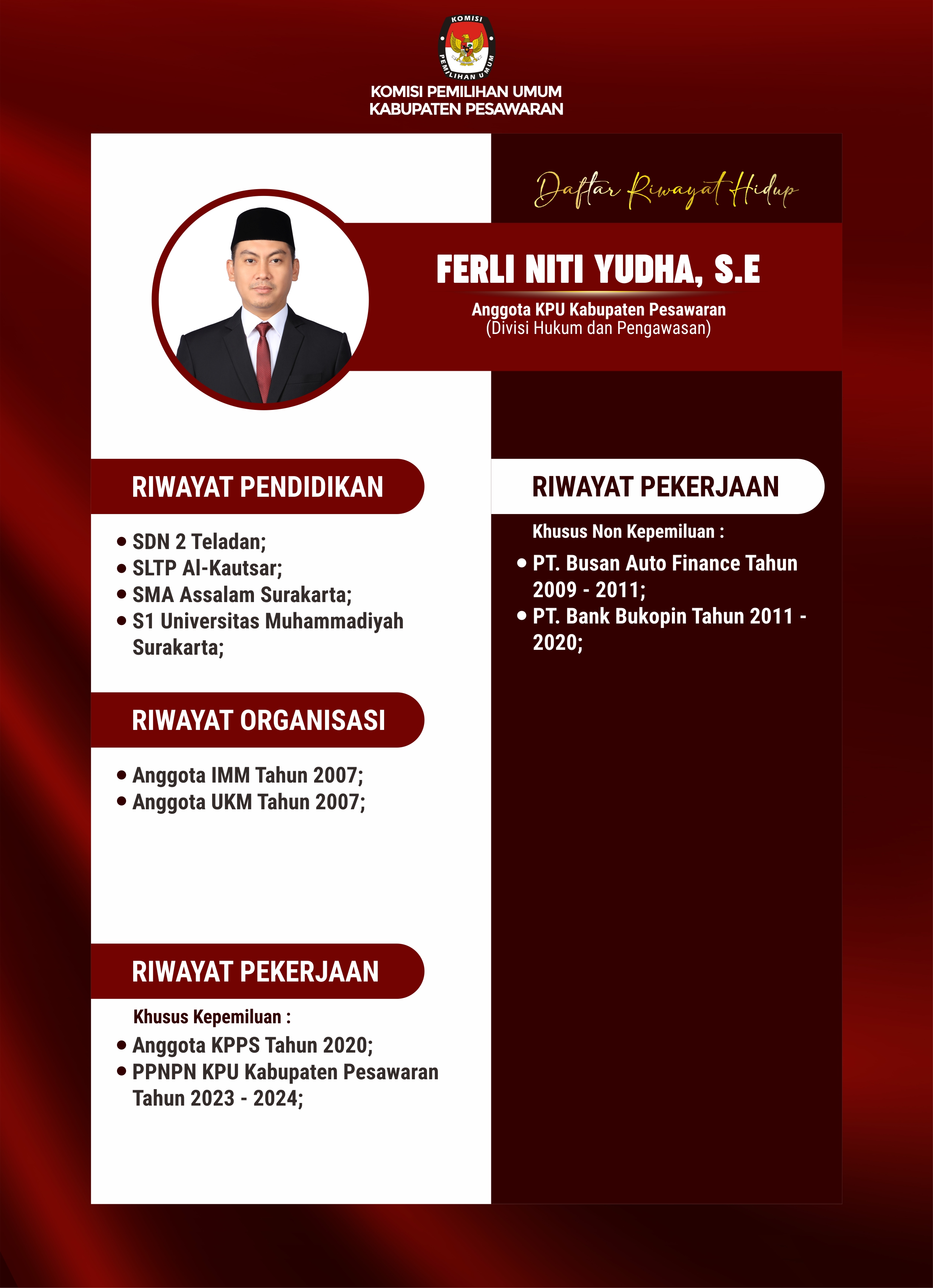 FERLI NITI YUDHA, S.E (Anggota KPU Kabupaten Pesawaran)