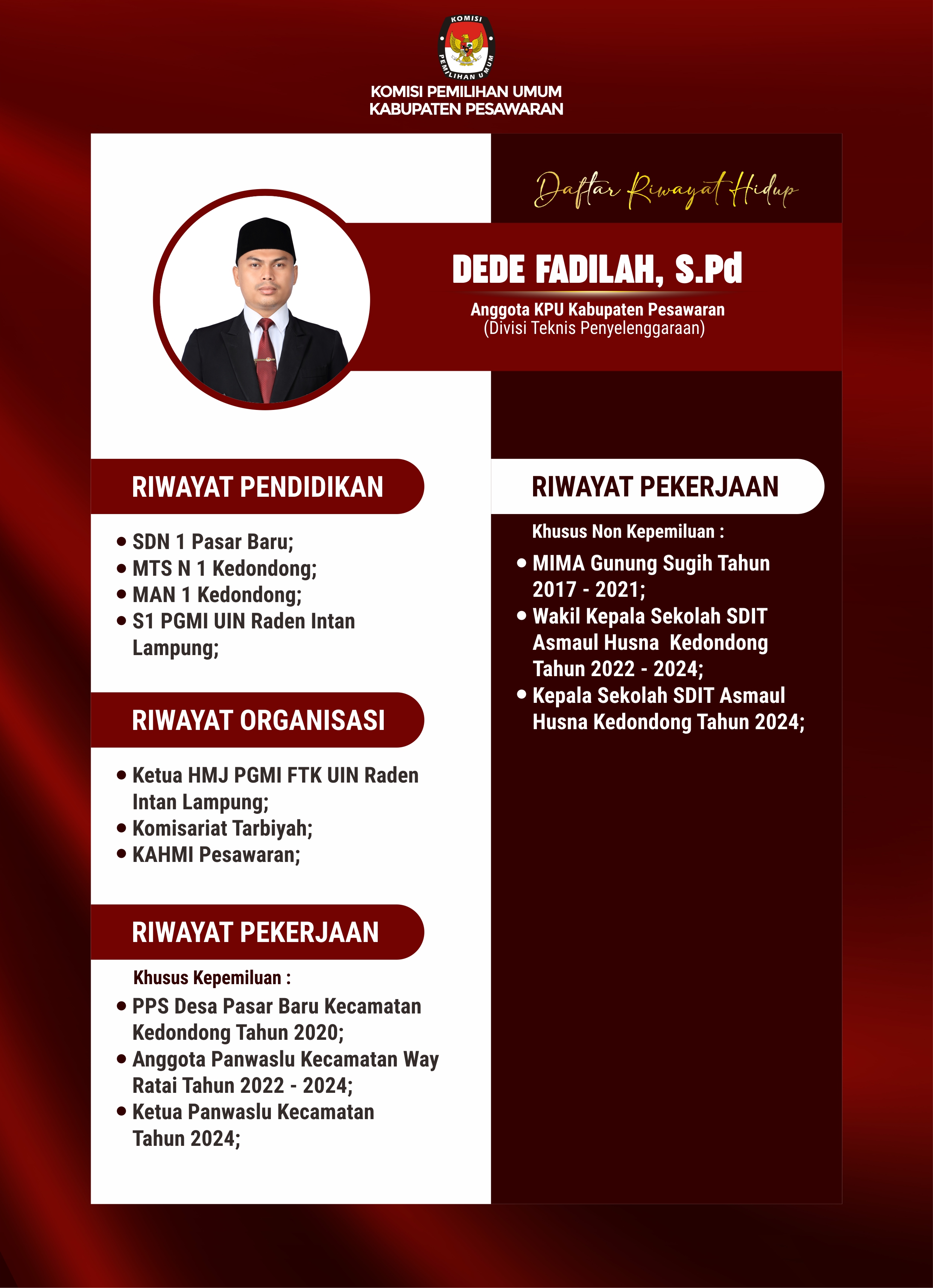 DEDE FADILAH S.Pd (Anggota KPU Kabupaten Pesawaran)