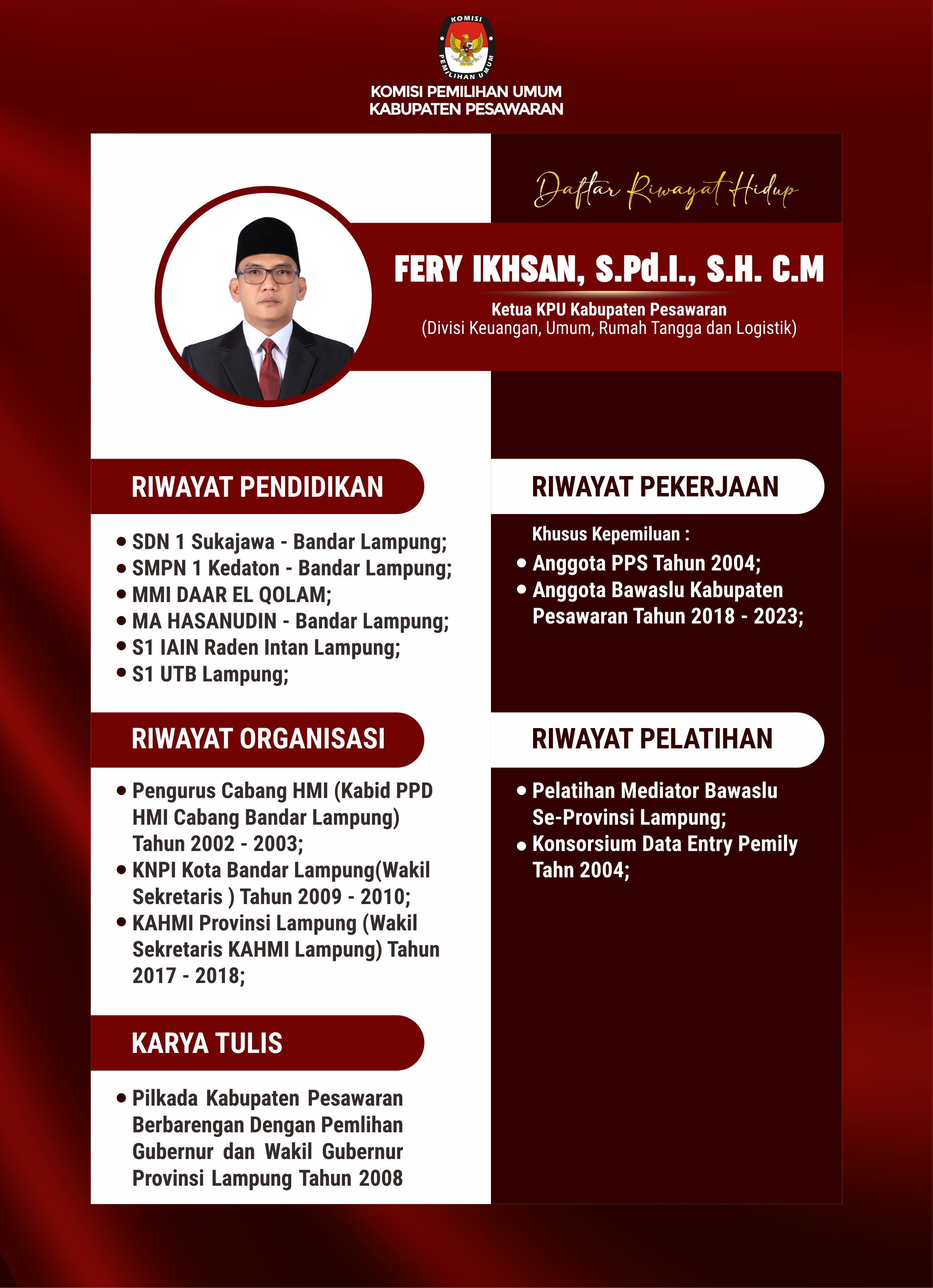 FERY IKHSAN, S.Pd.I.,S.H.C.M (Ketua KPU Kabupaten Pesawaran)